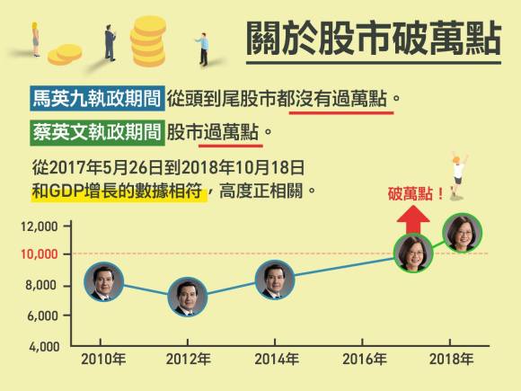 而且完全忽略2016年川普上台後全球股市大漲效應。單就美國道瓊指數來看,川普上台約20068點,昨日收盤約25826點,年複合成長率13.44%,考慮美國股市與經濟的量體遠大過台灣,小英政府真要拿股價當政績的話,其實是很失敗的!