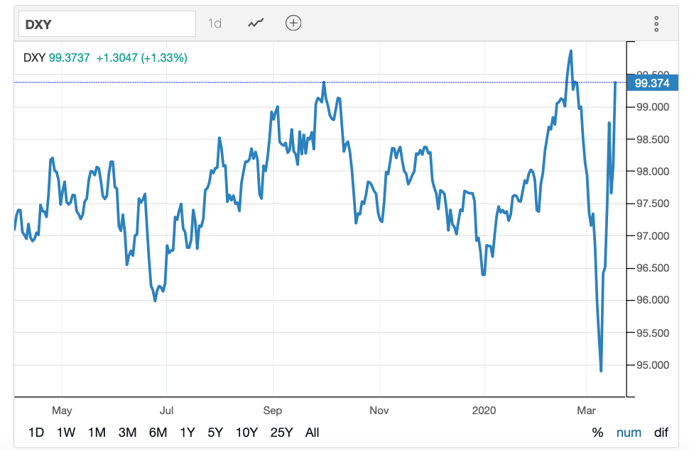 「…a. 本次股市大跌我認為是「貨幣幻覺」的修正,而非實體經濟的制度安排或生產力遭受破壞。 是的,我依然認為COVID-19壓抑了經濟活動,但尚未造成實質性破壞。此病毒本身造成的死亡與傳染狀況,其實都還不如H1N1。許多撐不下去的邊際型企業,多半在疫情爆發之前的體質就已經不佳。這種風落損失的確會淘汰不少這類企業,可是以整體全球經濟活力角度觀之,恆久收入預期改變還不大。 某些不入流的財經專家以為美國面臨經濟危機、即將陷入長期經濟衰退等等看法,我均當做是「看走眼賠太多錢所以被嚇傻的言論」。 b. 然而,媒體販賣恐懼的過度炒作與政府的過度防疫舉措等等的經濟損失仍難以衡量。會不會因此造成恆久收入預期改變?我認為可能性不低。六月底再回頭檢視吧。 c. 印鈔救市,美國本質制度性問題不改,當然成效會有2008年以來的邊際效應遞減問題,同時也極有可能產生「經濟蜂窩性組織炎」的金包銀現象。是我等投資者不可不慎的思考點。 川普年底選情轉壞,亦或美元轉弱勢(見圖),都可能讓美國政府重新在中東或世界某處引發戰爭衝突。但對美國經濟本身而言依然是弊大於利。」(為何此次崩盤黃金也跟著跌?黃金不是避險工具嗎?–3/17)