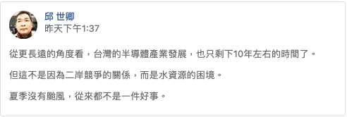我並非從水資源困境,而是從電力供應質、量與可靠性與4奈米以下矽晶片會碰上的量子力學困難兩個角度推估。