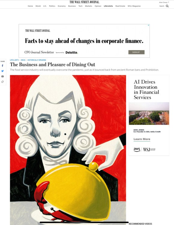 WSJ有趣的歷史短文–「The Business and Pleasure of Dining Out」。