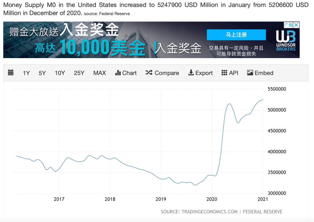 2. 美國政府2020年的瘋狂印鈔行為(參見下圖)是否會引發嚴重通貨膨脹?投資人應該如何因應?