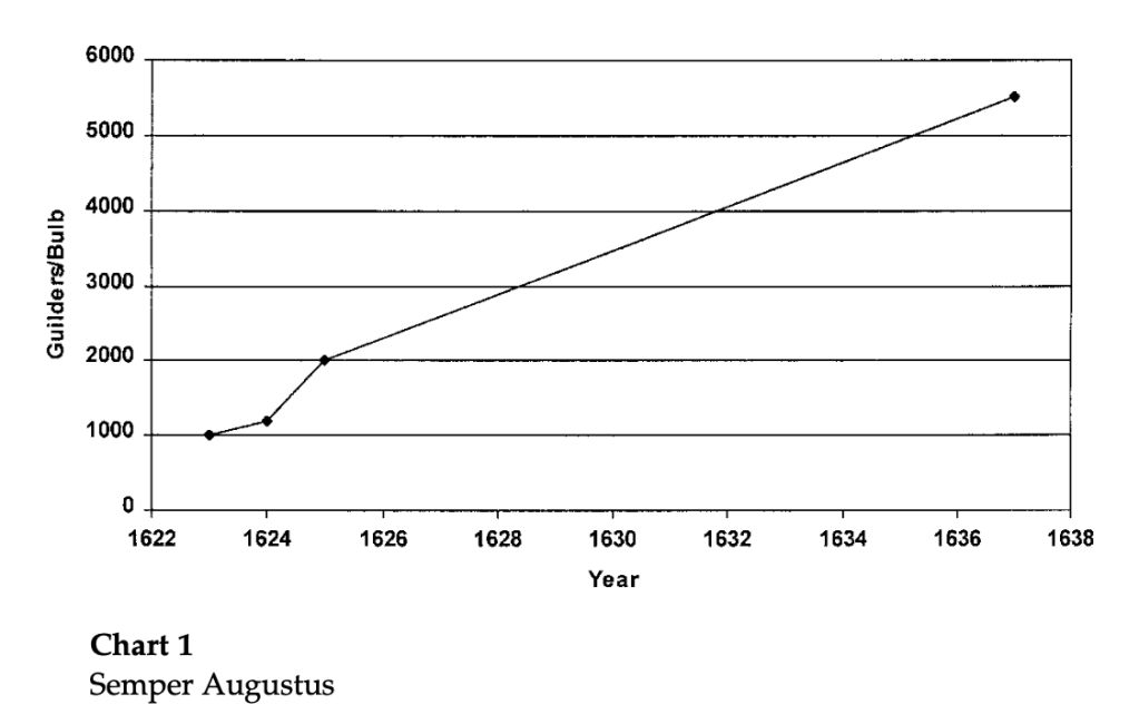 3. 非常昂貴的品種,如Semper Augustus 的真實漲幅只有5倍(從原本的1千出頭荷蘭盾漲至5千多),並非都市傳說中幾百倍的漲幅。
