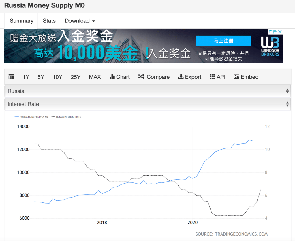 故,同樣因應新冠疫情而寬鬆貨幣的俄羅斯,其面對的國際經貿環境不比美國日本,自然很快就承受不住通膨壓力於近日宣布一口氣調升利率100個基點至6.5%。(見圖)