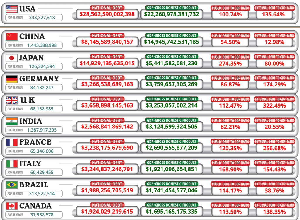 再看看目前世界主要經濟體的債務狀況(見圖)
