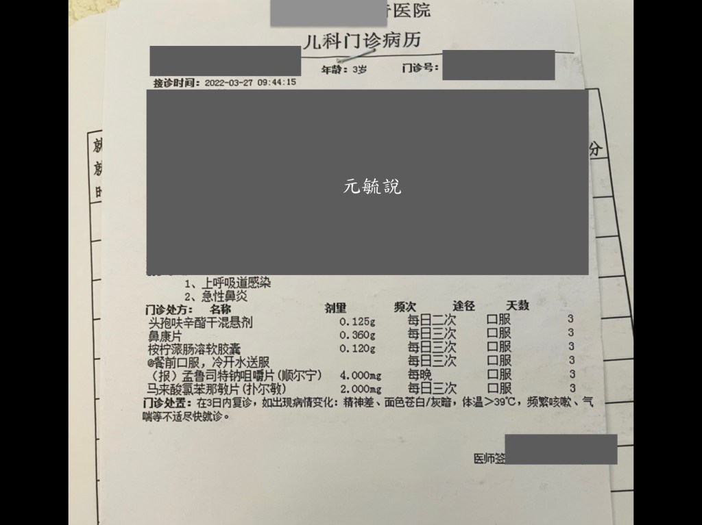 家長帶去大醫院看西醫耳鼻喉科,服用西藥半年無果,中間也在多家醫院診所就診均失望而回。後又找上中醫卻也毫無療效。(見病歷截圖)