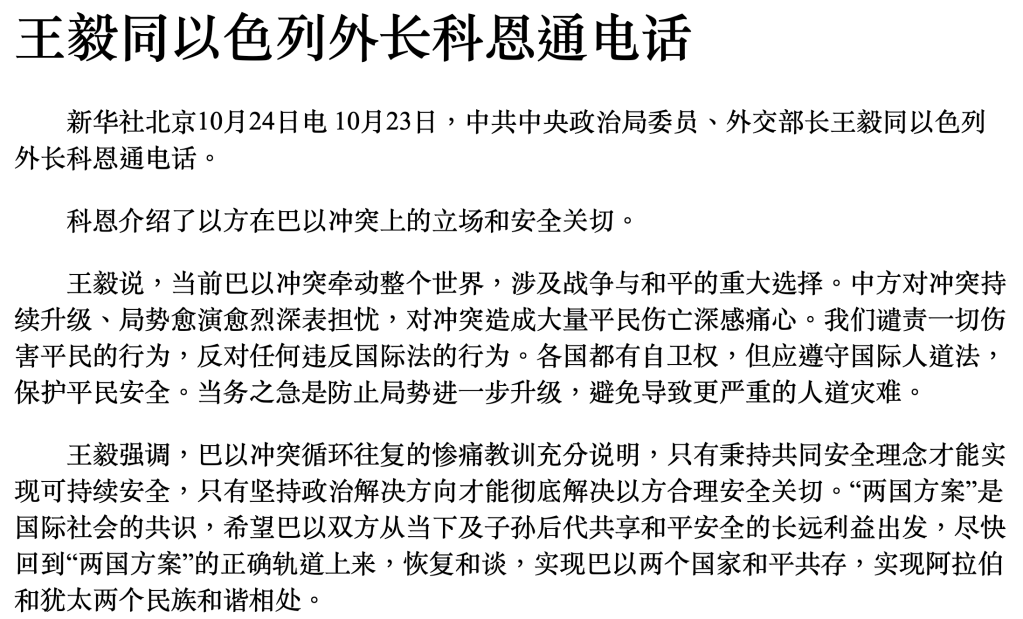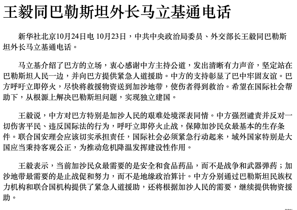 現在世界如此重大國際糾紛衝突發生,以巴雙方都與中國通話。