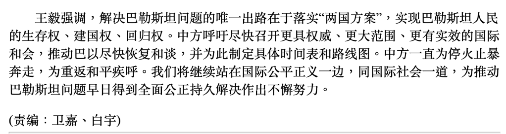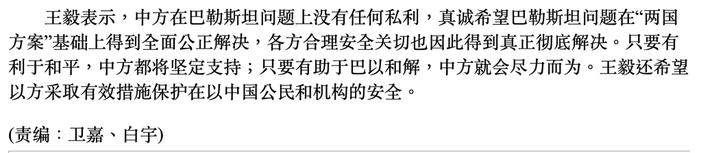 中國外長王毅一天內先後與巴勒斯坦外長和以色列外長通話