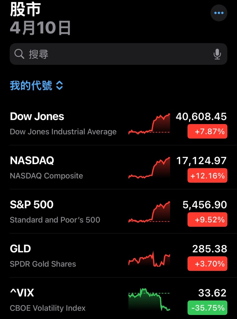 川普一說部分關稅90日要暫緩實施,市場馬上失心瘋的回彈(當然不排除軋空因素擴大漲幅)。