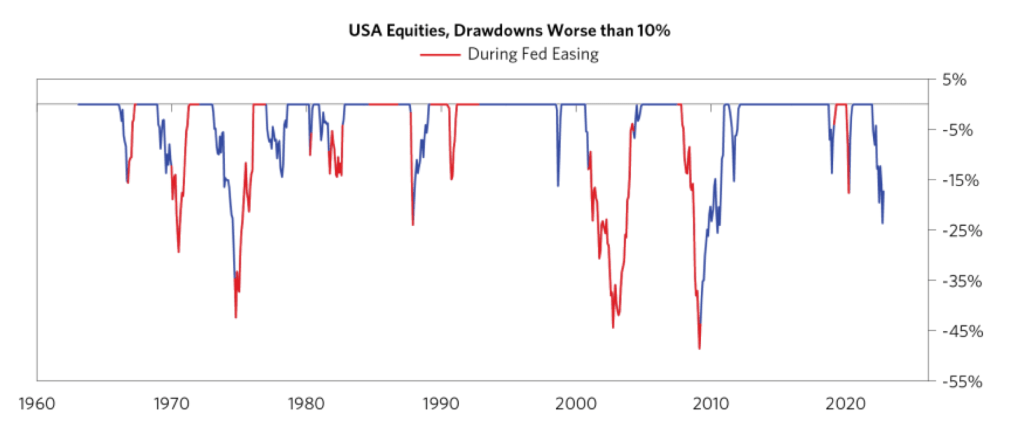 而且超過一半是Fed轉入貨幣寬鬆政策相當時間後,股市才開始底部翻身。換言之,現在是熊市反轉的可能性相當低。